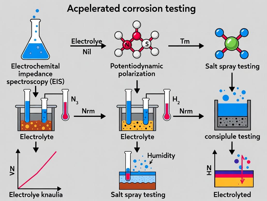 | Primary Output | Time to appearance of corrosion (hours). | Corrosion rate (mm/yr), pore resistance (Ω·cm²), capacitance (F). | Mass loss (g/m²/day), time to blistering/failure. |