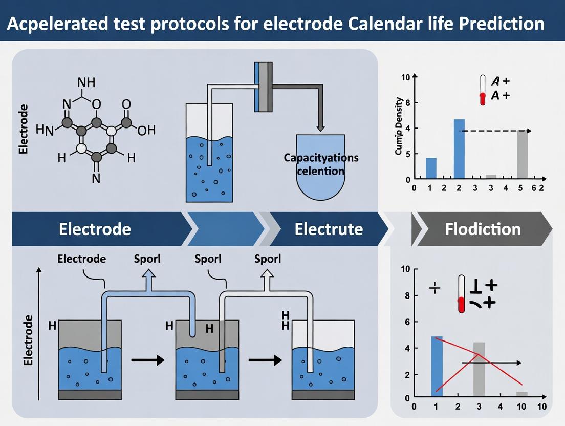 This article provides a comprehensive guide for researchers and development professionals on accelerated test protocols for predicting electrode calendar life—a critical parameter in biomedical devices and diagnostics.