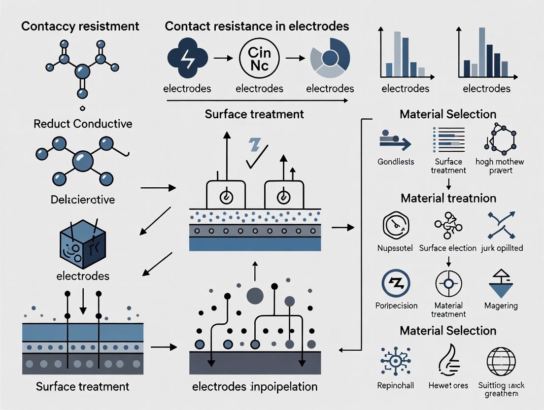 This article provides a comprehensive overview of contemporary strategies for reducing contact resistance at electrode interfaces, crucial for enhancing signal fidelity in biomedical sensing, neurostimulation, and diagnostic devices. Tailored for researchers and development professionals, it explores the fundamental causes of contact impedance, details cutting-edge surface modification and material engineering methodologies, offers troubleshooting frameworks for common experimental challenges, and evaluates validation techniques to compare method efficacy. The synthesis of foundational principles with applied optimization protocols aims to accelerate the development of more sensitive and reliable bioelectronic systems.