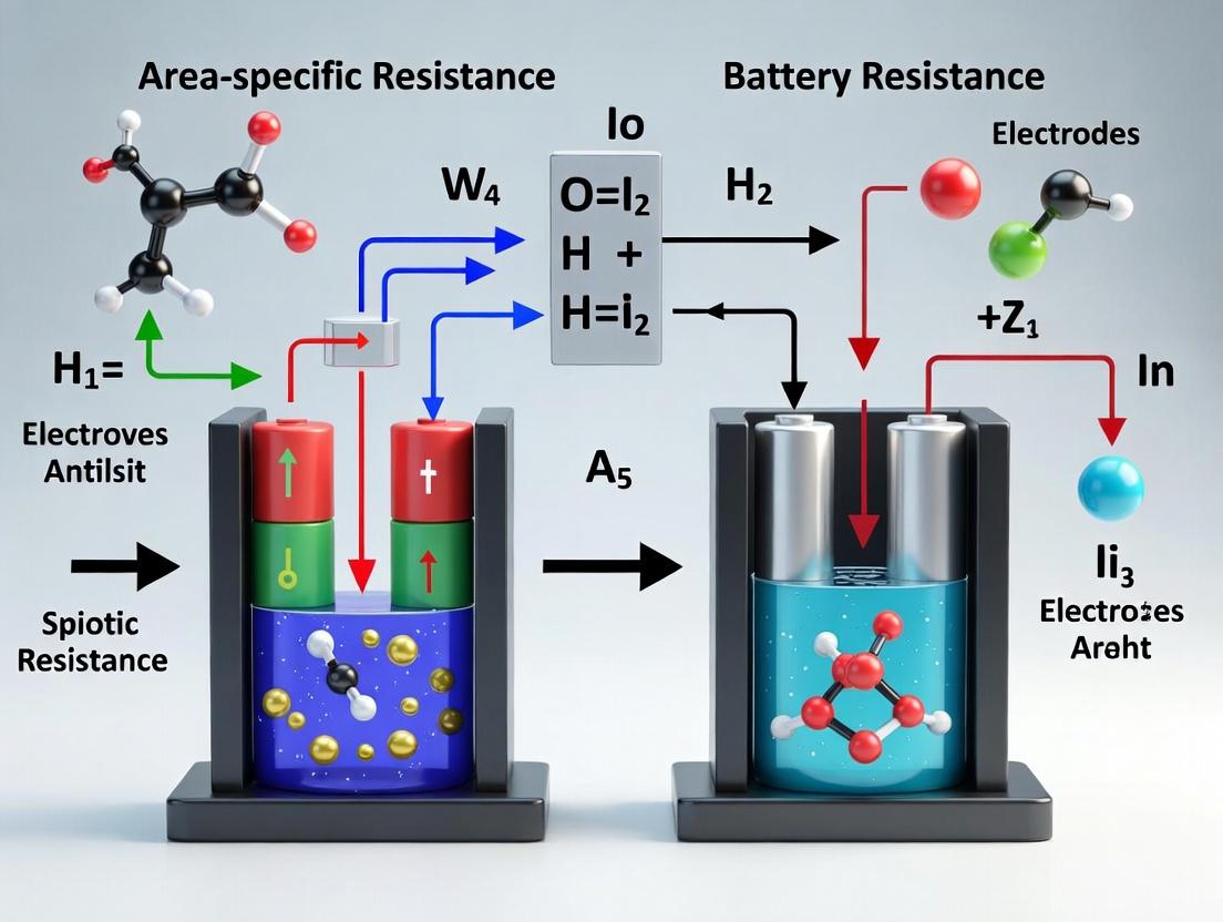 Understanding and controlling area-specific resistance is paramount for advancing battery technology, directly dictating power, efficiency, and longevity. The foundational exploration reveals ASR as a complex sum of interfacial phenomena, while advanced methodologies provide the tools for precise diagnosis. Troubleshooting strategies highlight that mitigation is multi-faceted, requiring tailored material and engineering solutions. Comparative validation underscores that while target ASR values differ by chemistry, the principles of minimization are universal. For biomedical and clinical research—particularly in powering implantable devices—these insights are critical for developing safer, longer-lasting, and higher-power miniaturized batteries. Future directions must integrate multi-scale modeling with high-throughput experimentation to design interfaces a priori, accelerating the development of next-generation energy storage for both consumer electronics and life-saving medical technologies.