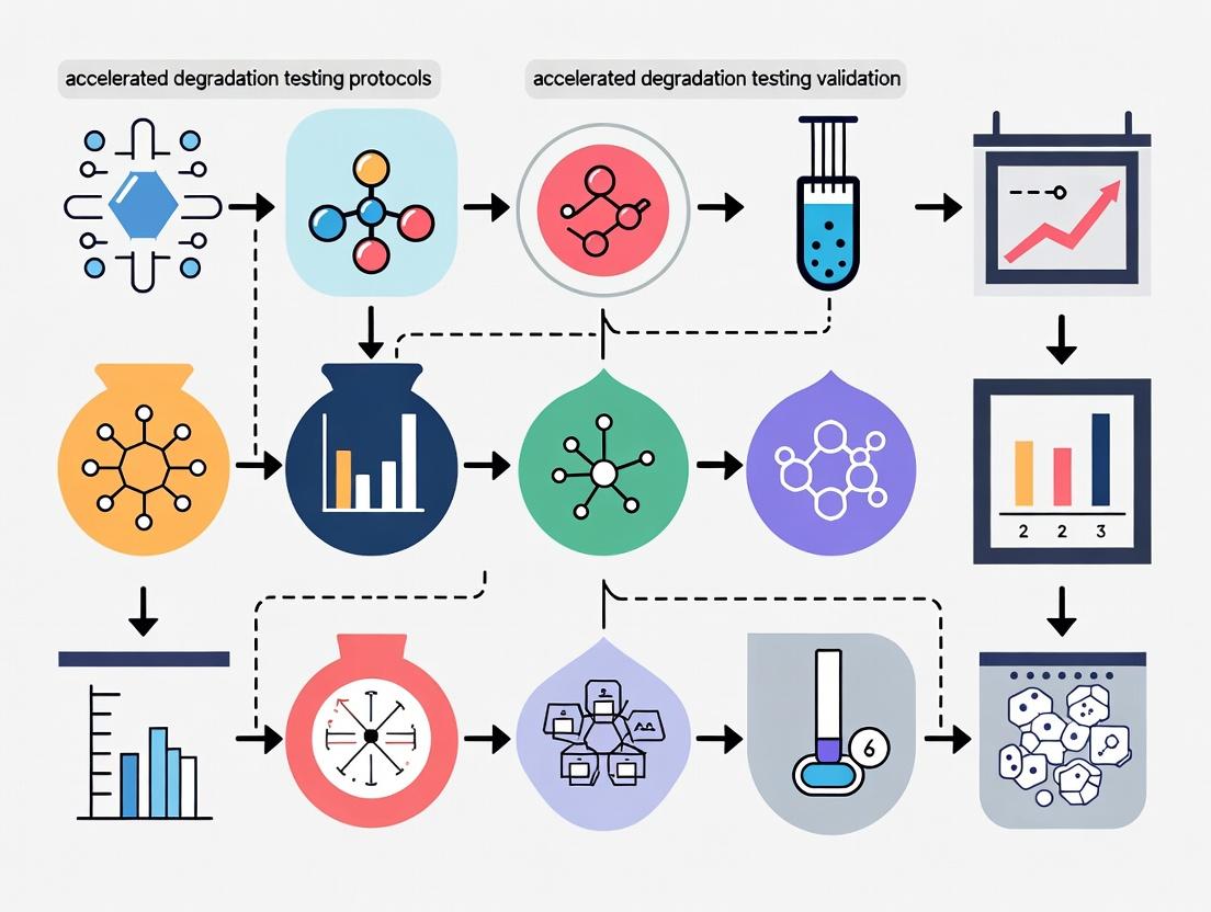 Validated accelerated degradation testing is a cornerstone of modern pharmaceutical development, enabling faster, data-driven decisions without compromising product quality or patient safety. A successful protocol rests on a solid foundation of chemical kinetics, a meticulous methodological design, proactive troubleshooting, and rigorous statistical validation against real-time data. As drug modalities grow increasingly complex, the future of ADT validation lies in embracing advanced modeling techniques like AI/ML and developing tailored approaches for novel delivery systems. By adhering to the principles outlined herein, researchers can confidently utilize ADT to shorten development timelines, optimize formulations, and ensure robust shelf-life predictions, thereby accelerating the delivery of vital therapies to patients worldwide.